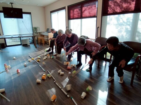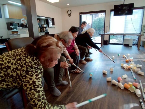 本日もおとなりさん。体操でしっかりと運動し、その後は新聞棒と紙コップを使ったゲームで熱く戦っておりました。遊びの中にも真剣さがあり白熱してましたね。