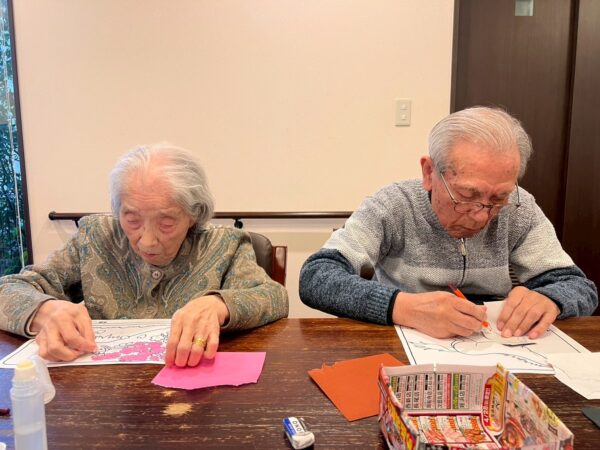 好きな絵を選んで頂き、折り紙をちぎってちぎり絵です。