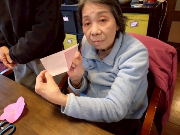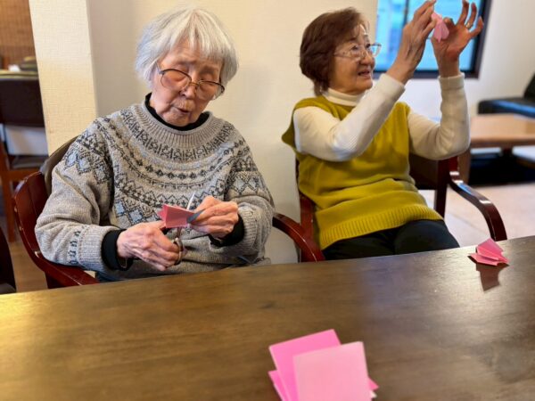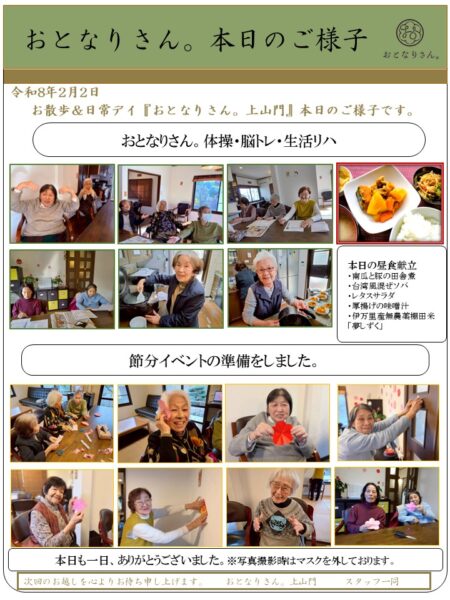 午後は雨が降り出してきて皆さん室内で過ごしたいとの事で皆さんで明後日に行う節分イベントの準備をしていただきました。