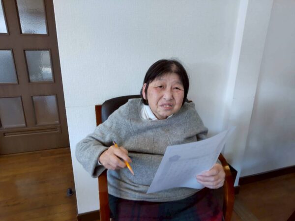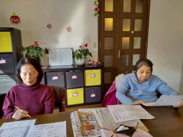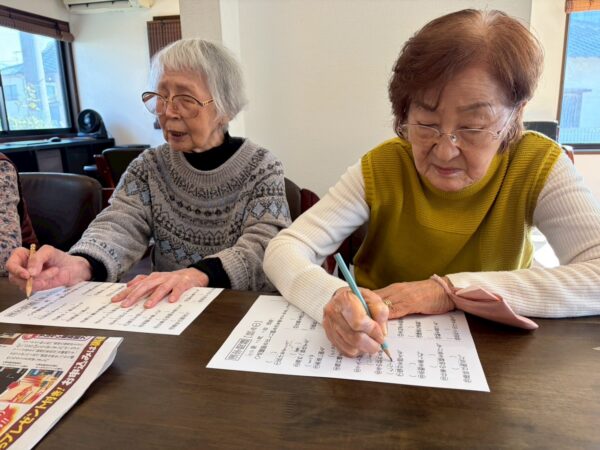 おとなりさん。体操で身体をほぐした後に脳トレプリントで頭も解しました。