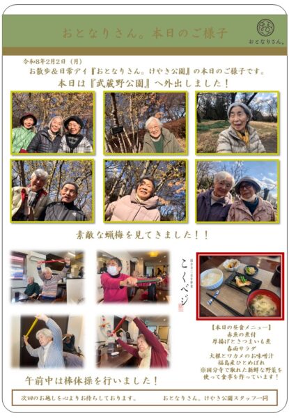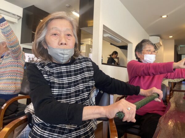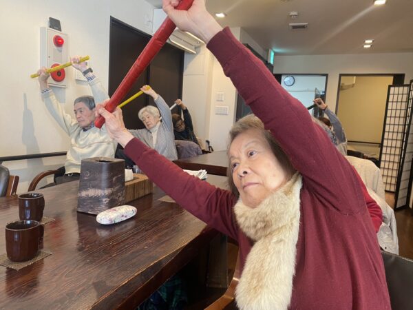 午前は機能訓練として、棒体操を行い、身体を使った時間を過ごしました。