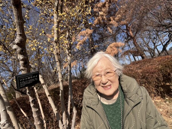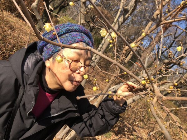 園内をゆっくりと進んで行くと、黄色の可愛らしい蝋梅が見えてきましたね。すぐ隣には紅梅も咲いており、少しずつ季節の移ろいを感じましたね。ほのかに漂う甘い香りを楽しみました。