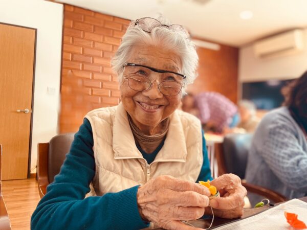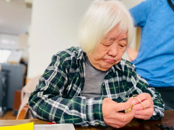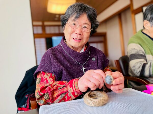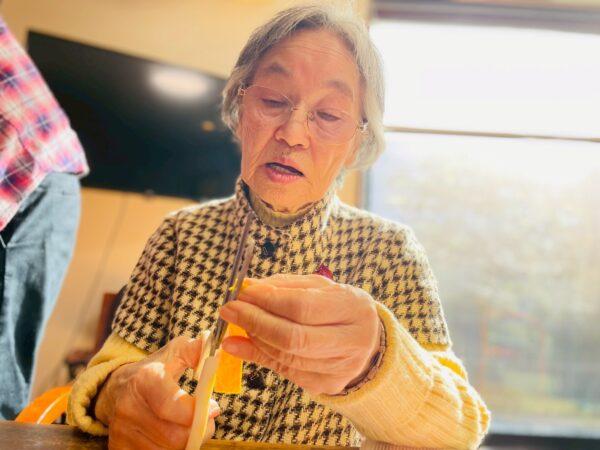 午前中は、フラワーバスケット作りをしました。細かな作業で集中されました。