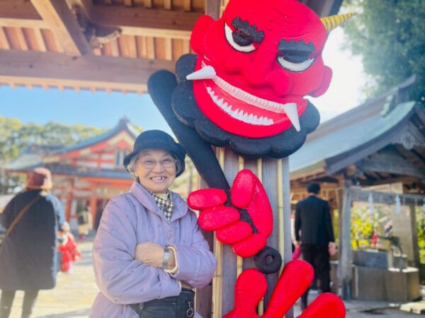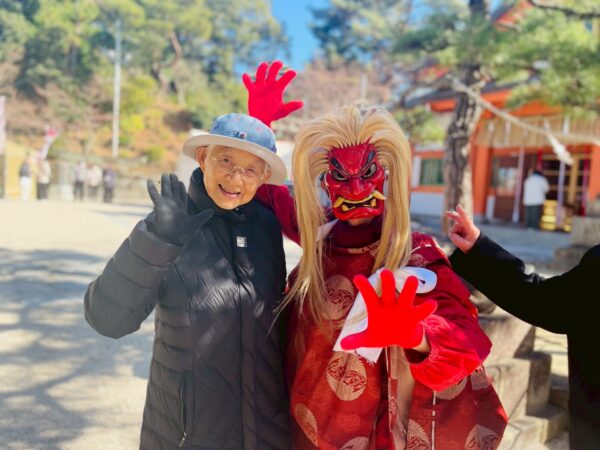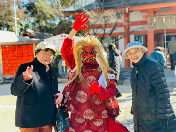 皆様、鬼と一緒に記念撮影をしました。楽しかったですね!