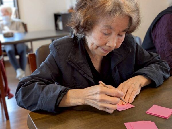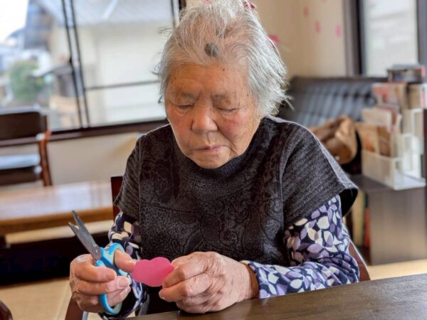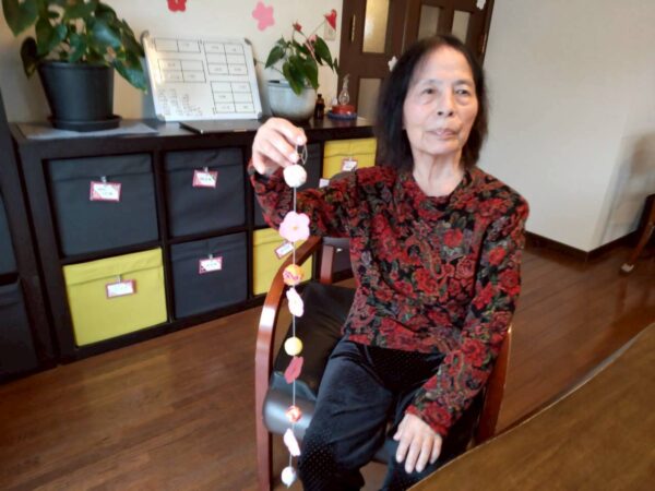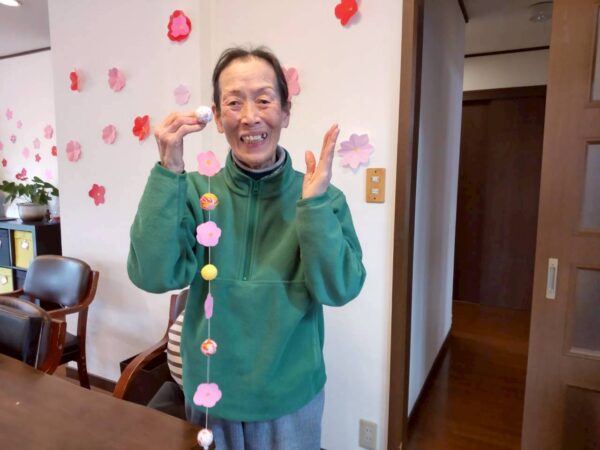 本日のレクでは桃の節句に向けて吊るし飾り作りをしました。