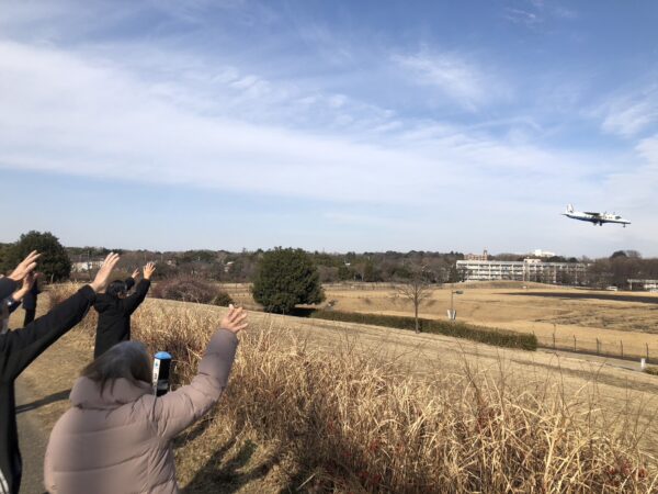 午後は調布飛行場が見える、見晴らしの良い『武蔵野の森公園』に外出しました。