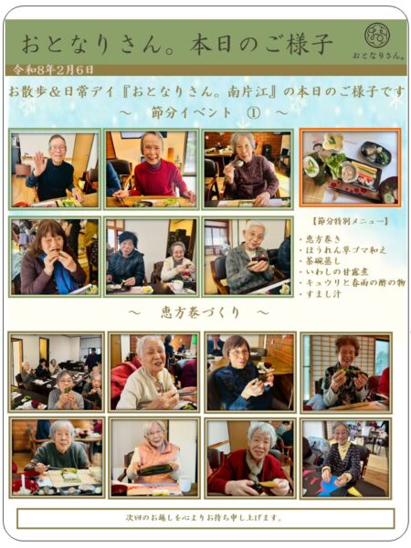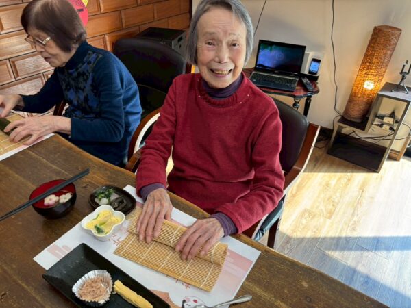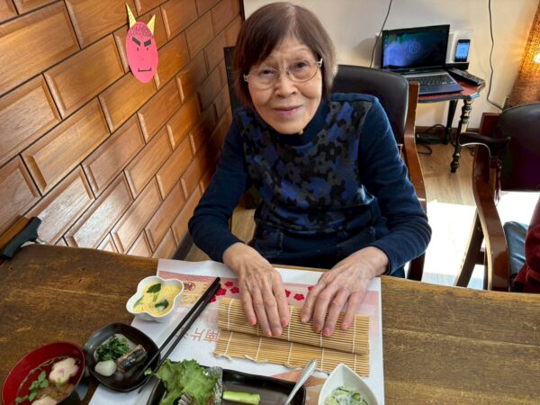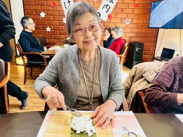 今日は節分イベントで午前中は皆さんで恵方巻づくりをしました。