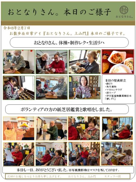 今日は地域のボランティア様の紙芝居と歌の時間があるのでご利用者様のみなさまも大変楽しみにされています。