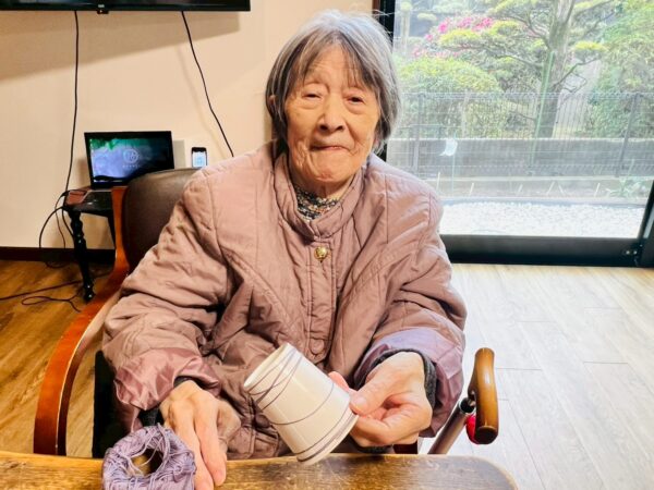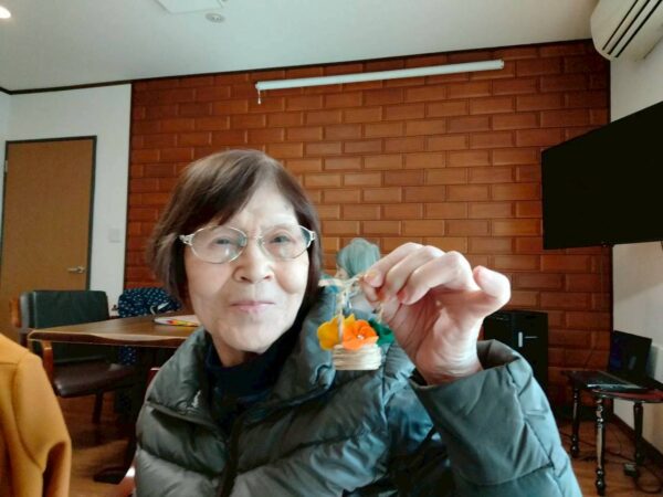 おやつ作りを作らないご利用者様は毛糸でバスケット作りをしました。