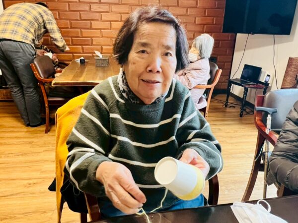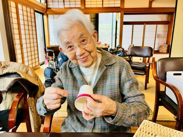 ご本人様で好きな色を選んで、毛糸で紙コップを回しました。