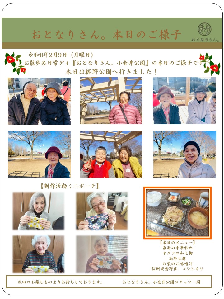 明日も機能訓練を兼ねた外出にお出かけしましょう。