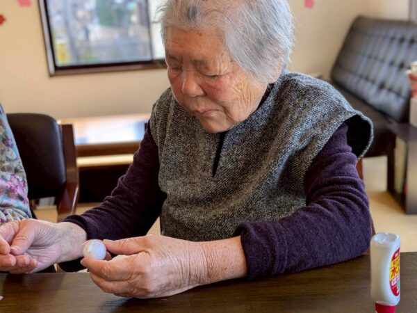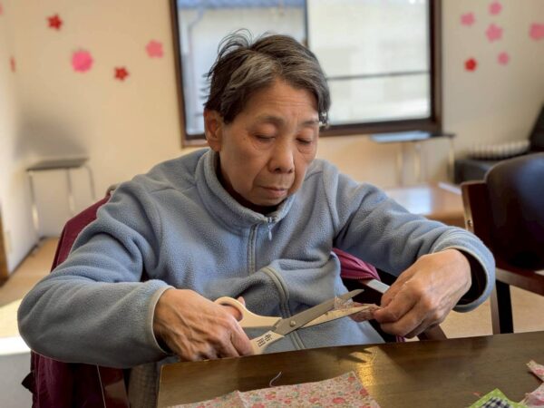 午前中はひな祭りに向けて壁に飾る吊るし飾りを制作しました。