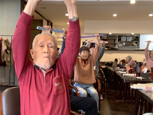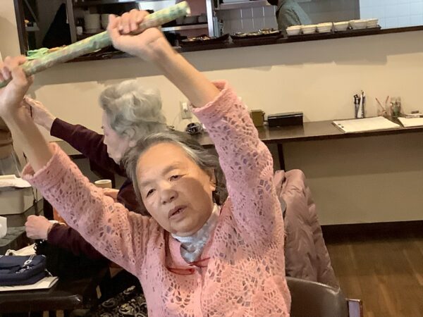 棒体操も真剣です。