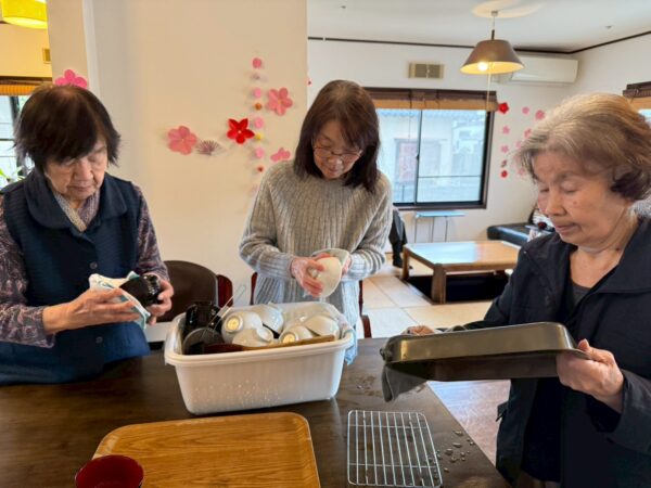 香ばしいあんこの甘い香りがお部屋いっぱいに広がり、ご利用者様も「美味しいね」と笑顔がこぼれていました。