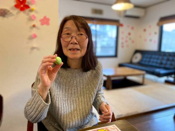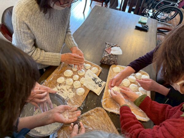 室内で皆さんと一緒に梅ヶ枝餅作りを楽しみました。