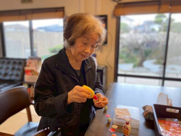 午前中はひな祭りに向けて壁に飾る吊るし飾りを制作しました。
