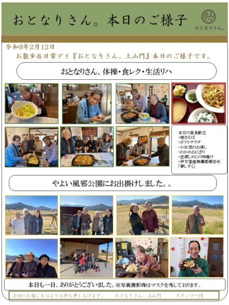 ご利用者様も「今日は寒くないね」と笑顔で話され、青空の下で穏やかなひとときを過ごすことができました。