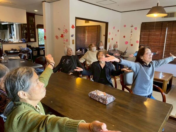 おとなりさん。上山門では元気におとなりさん。体操からスタートです。