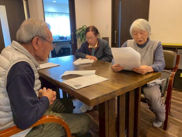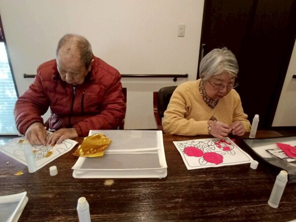 制作の後は全員で合唱しました。唱歌を歌い「懐かしいね」っと仰られていました。