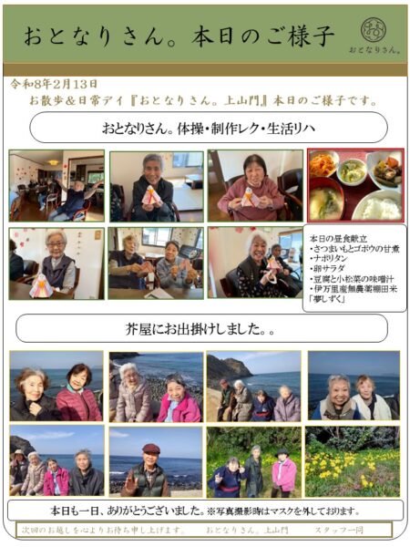 本日も「おとなりさん。上山門」では皆様元気にご来所されています。