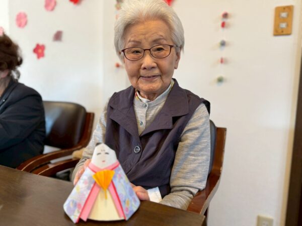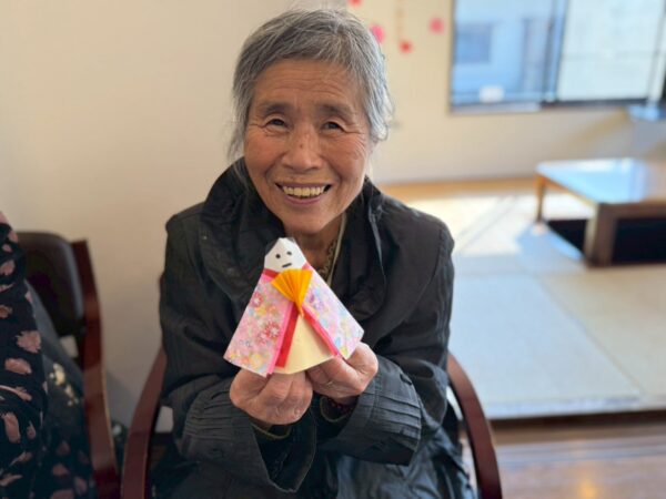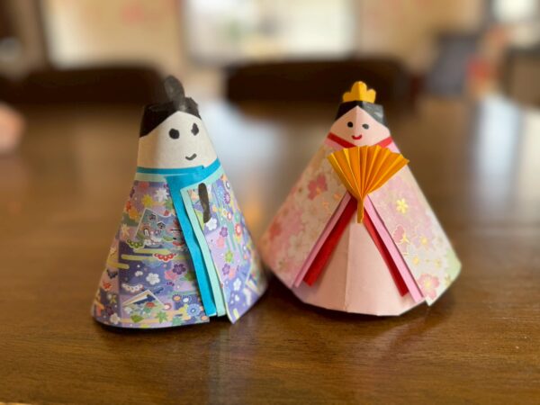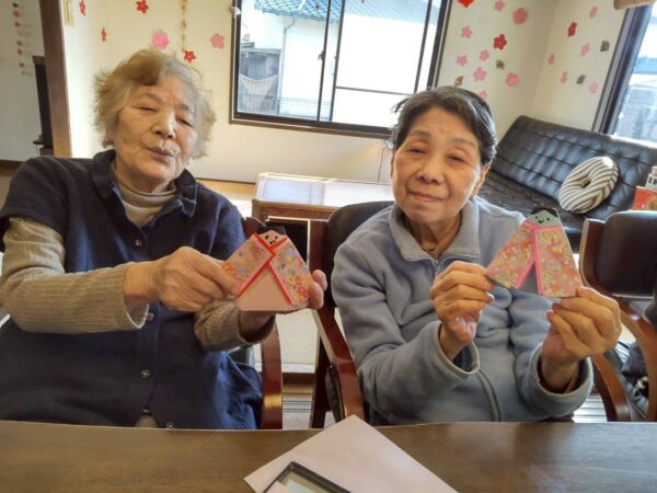 体操の後はひな祭りに向け折り紙でお雛様、お内裏様を作りました。
