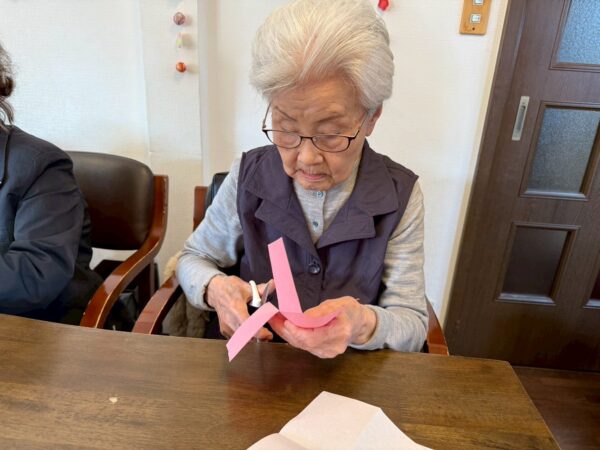 「簡単そうに見えて難しいね。」「わーかわいい。曾孫にも作ってやりたい」と皆様出来上がりを見て笑顔が溢れていました。
