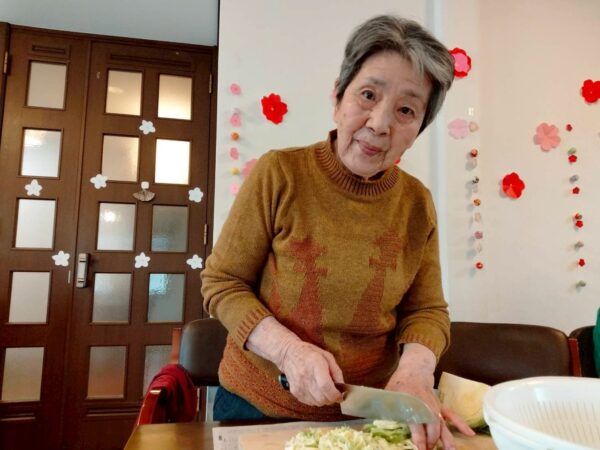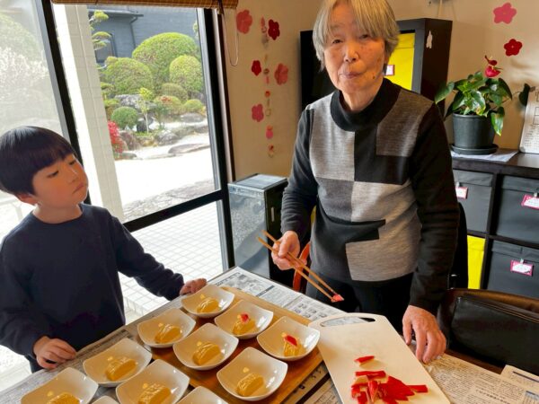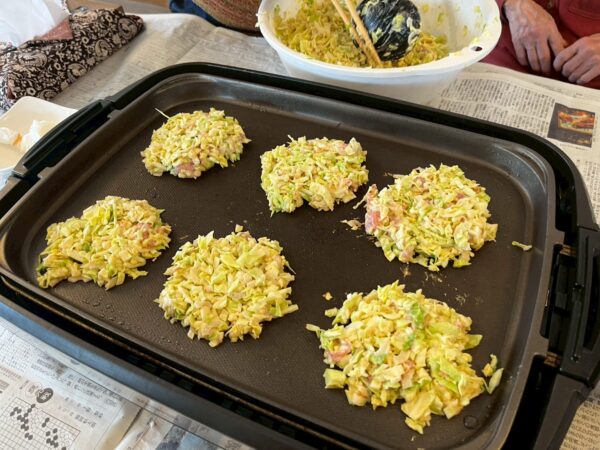 おとなりさん。上山門では今日は午前中はお好み焼きづくりを皆さんで行って頂きました。