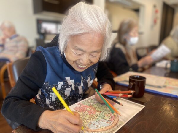 脳トレや編み物などを行っていただき、集中するとあっという間に時間が過ぎていきましたね。