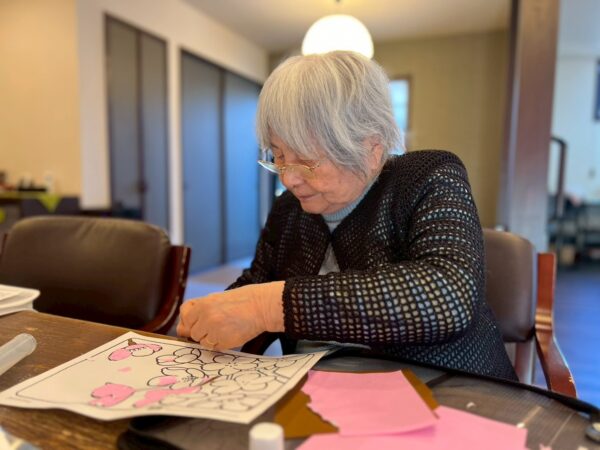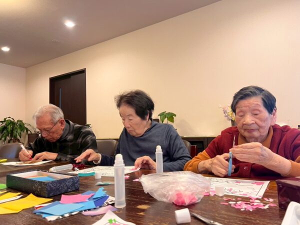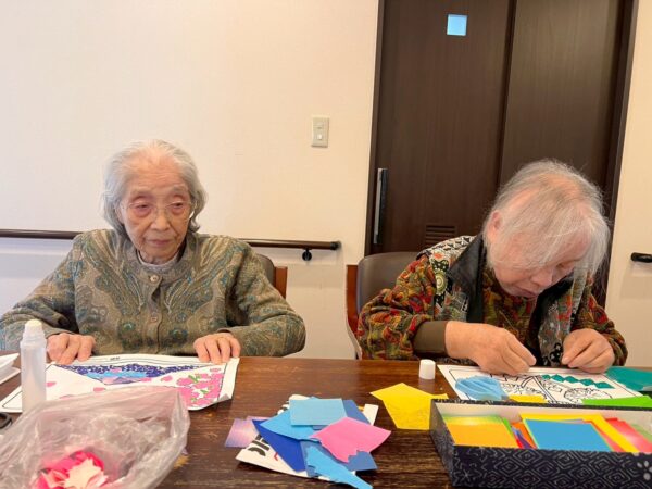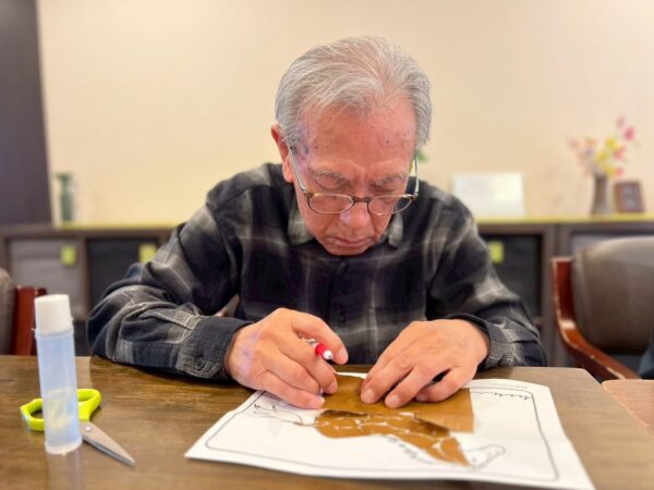 午前中の活動はちぎり絵制作です。