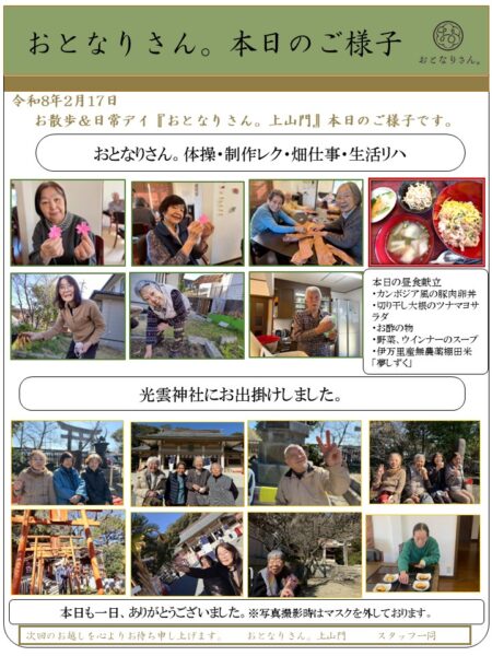 皆様こんにちは。本日は暖かく過ごしやすい日でしたね。だいぶ春も感じられる日でした。本日もご来所していただきありがとうございます。