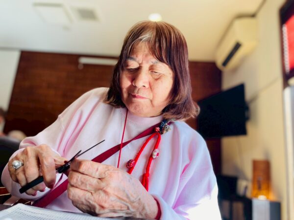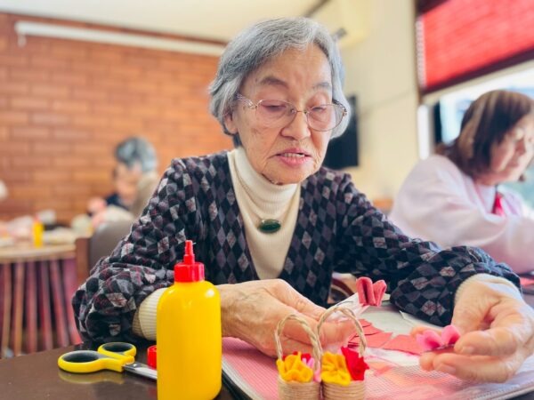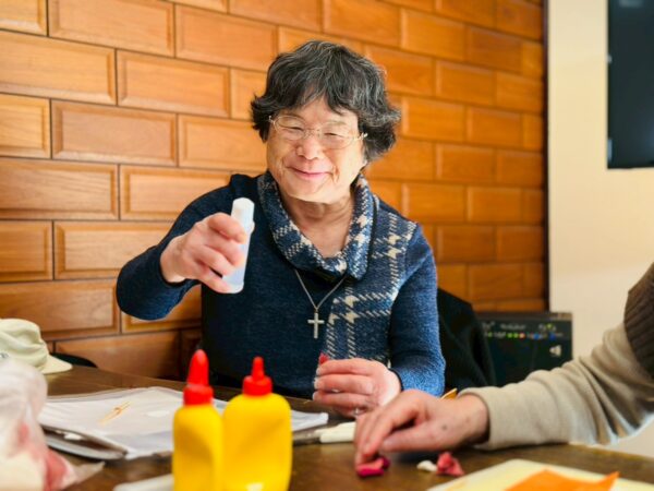 午前中の制作活動は、つまみ細工です。なかなか難しい制作ですが、皆様しっかり作られていますね。