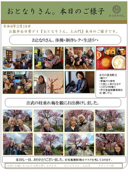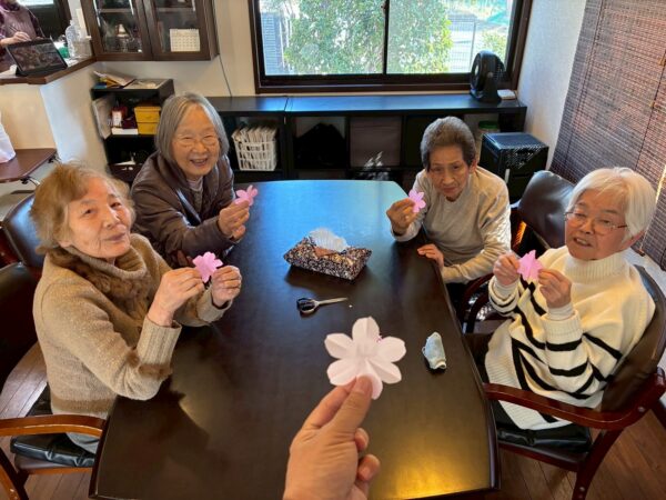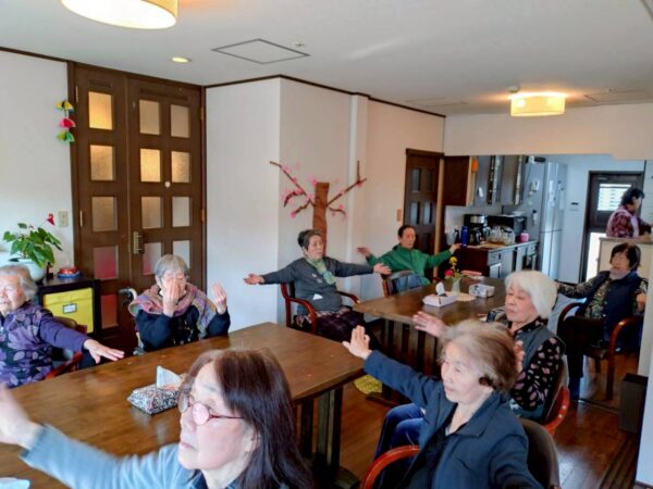 皆様こんにちは。今日は穏やかな春を感じる一日でした。おとなりさん。上山門では元気に体操を行った後デイルームの模様替えを行いました。