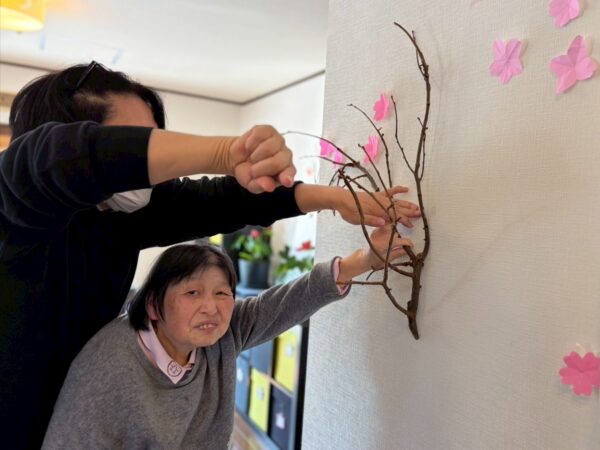 壁画制作で桜を作りました。