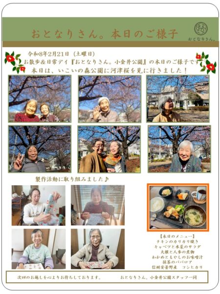 本日、おとなりさん。小金井公園では、皆様のリクエストにより