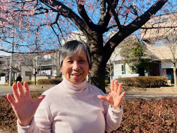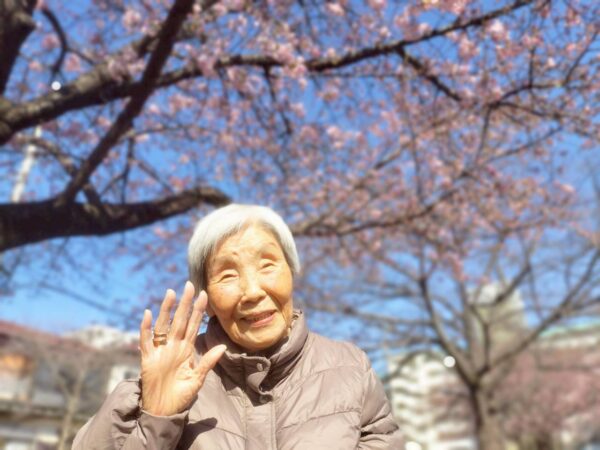 綺麗な桜を見て、自然と笑顔になってしまいます。