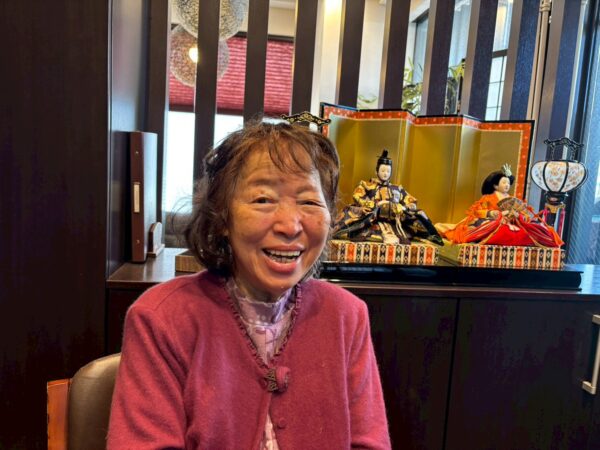 おとなりさん。ひこばえでは、玄関にお雛様とお内裏様を飾っております。