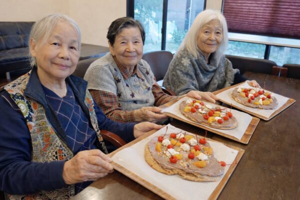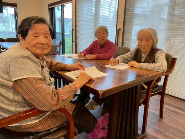 室内では、おやつレクをしたり、脳トレプリントをしました。