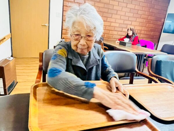 昼食後は、お盆拭き、食器拭きなどのお手伝いをして頂きました。