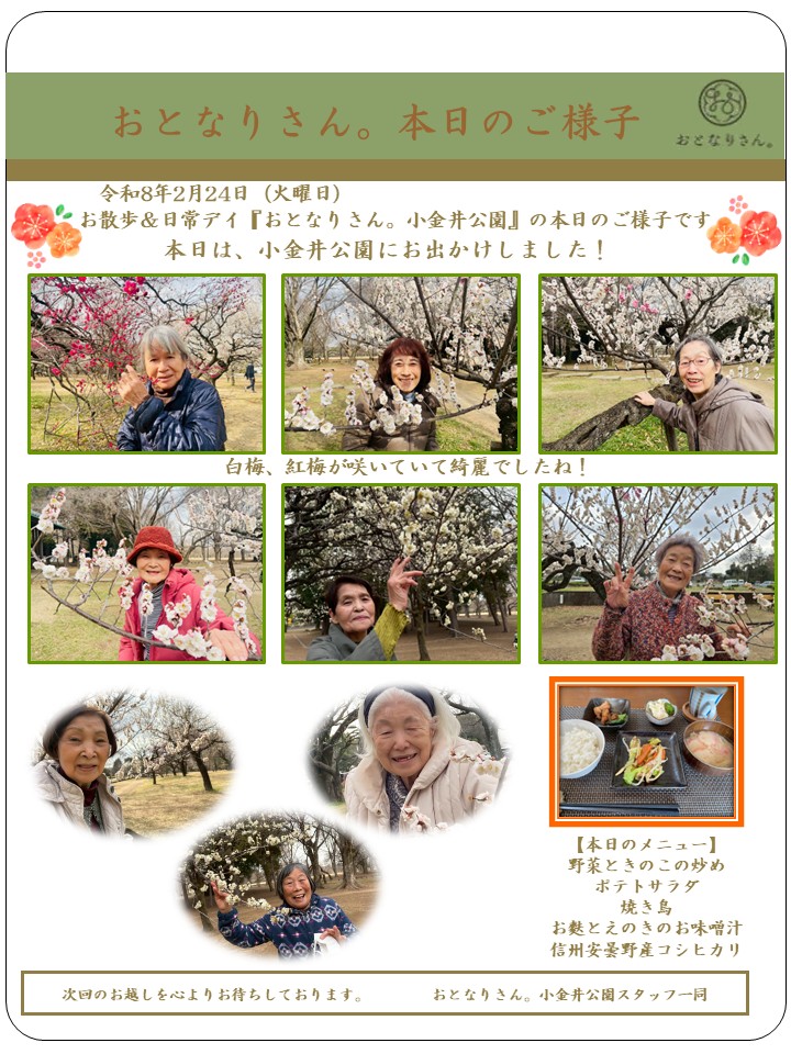 明日も機能訓練を兼ねた外出に出かけましょう。