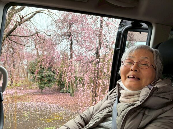 一方ドライブ組は、梅と桜を求めて、雨のお花見をしました。