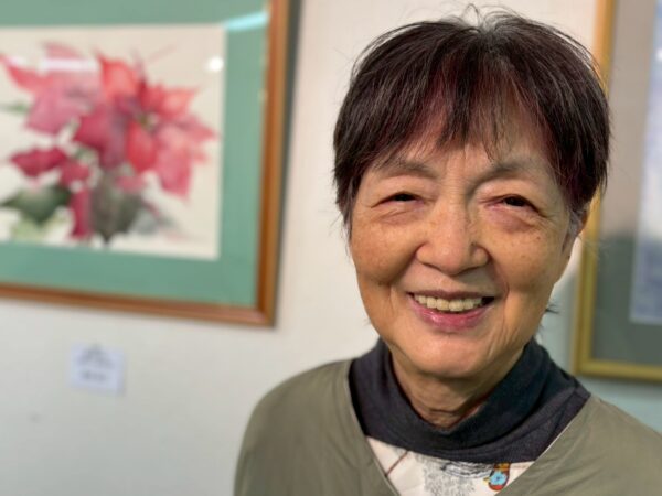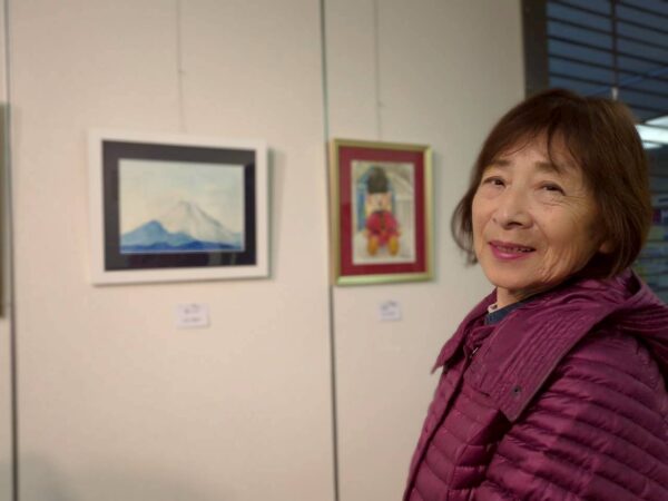 生憎の空模様だったため、小平中央公民館で開催中の水彩画展を観賞に出掛けました。