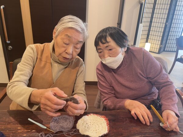 脳トレや編み物などを行っていただき、集中するとあっという間に時間が過ぎていきましたね。