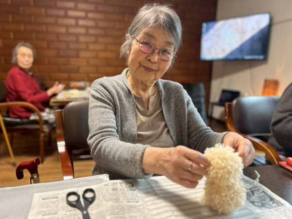 午前中は、毛糸を使ってテディベア作りをしました。