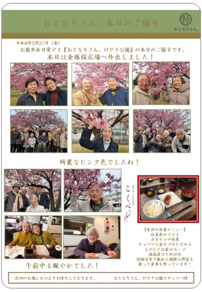 午後は金塚桜広場へ外出しました。