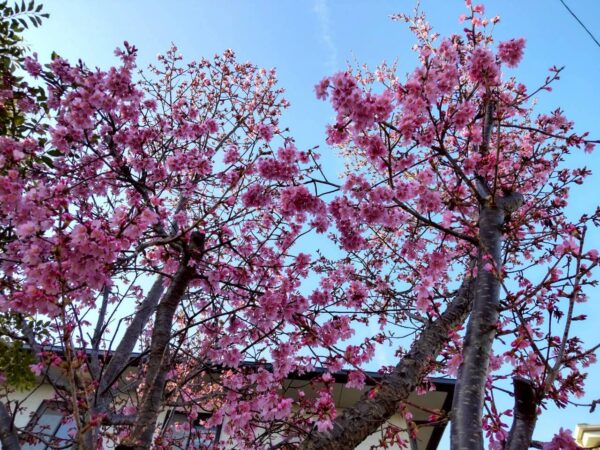 おとなりさん。の寒桜が開花を迎えています、春はすぐそこですね。