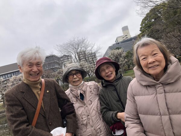 空は曇り空でしたが、穏やかな気候に皆様素敵な笑顔が絶えず、静かな園内で白梅と河津桜を眺めながら、ゆっくりとした時間が流れていましたね。