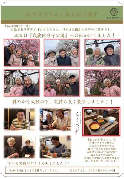 そんななか、おとなりさん。けやき公園では「武蔵国分寺公園」に外出しました。