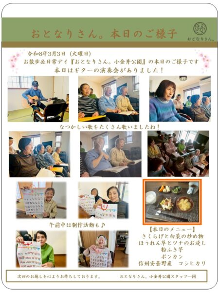 おとなりさん。小金井公園では、ギターの演奏会を開きました!