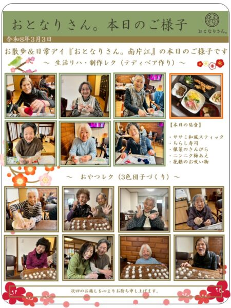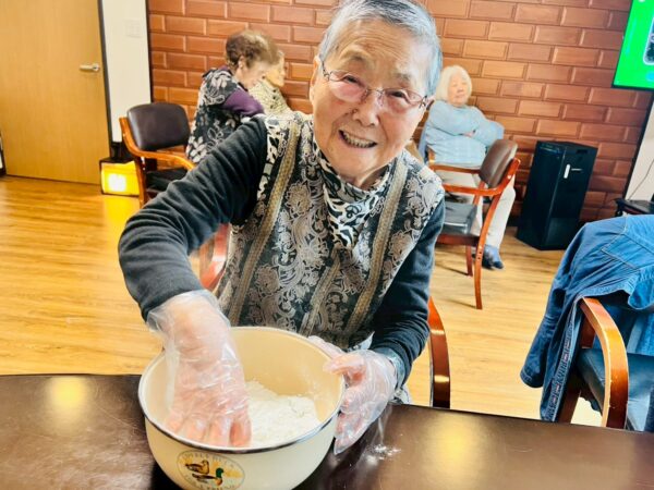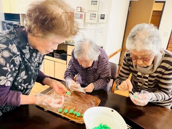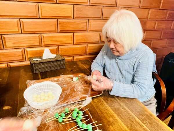 今日は雨の日だったので室内で過ごしましたが、皆さん楽しそうにお団子づくりをしたり、脳トレやマルチタスク体操などをして