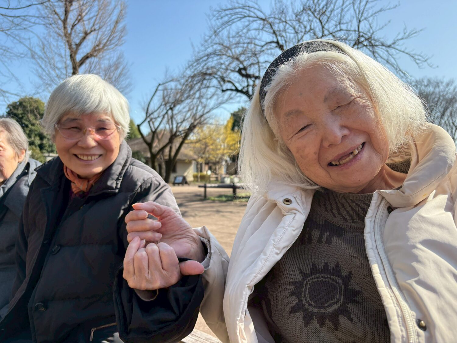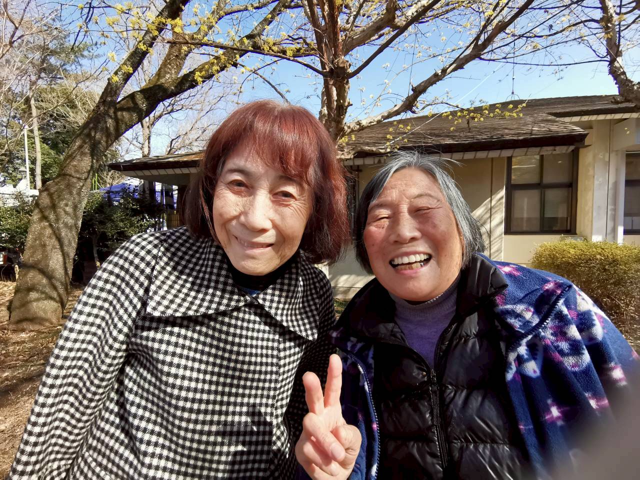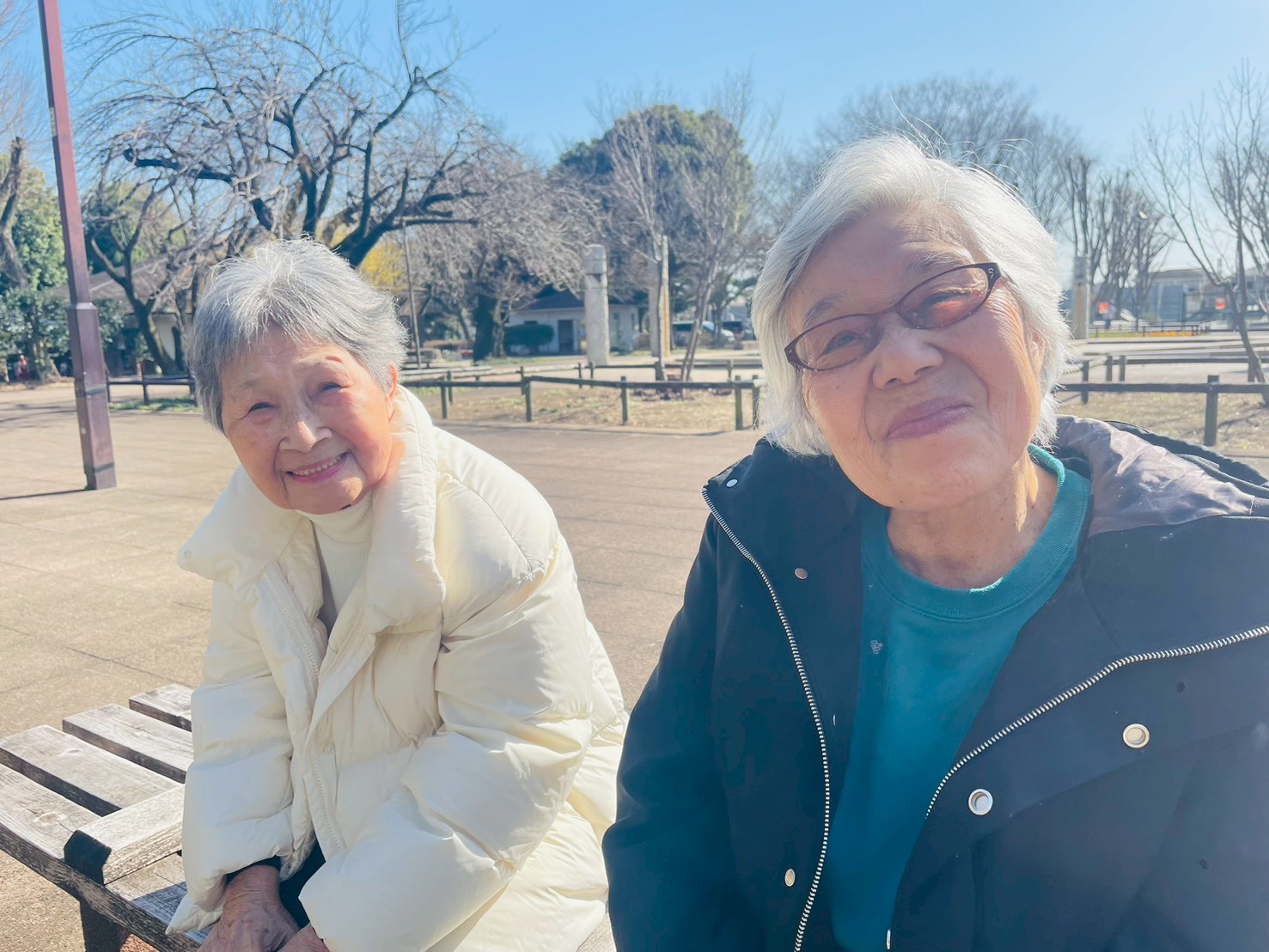 園内を機能訓練してそのあとはベンチでひと休み。上を見上げると桜のつぼみが膨らんでいました。桜が開花したらお花見にお出かけしましょう!